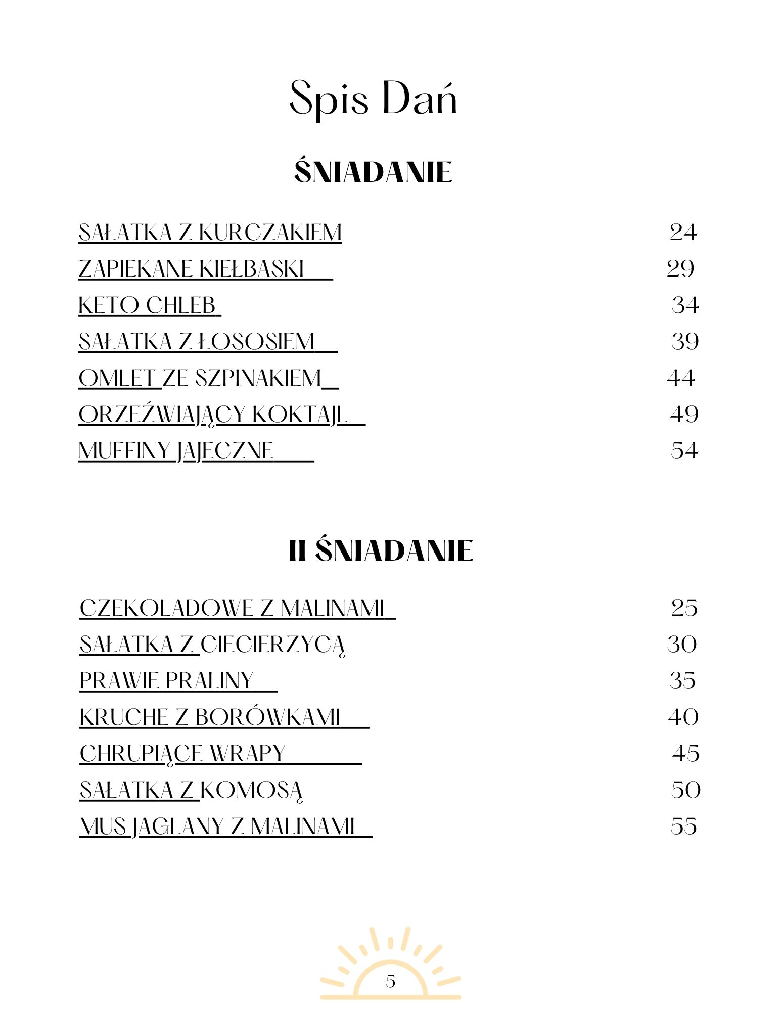 • po 7 propozycji na zbilansowane śniadania, II śniadania, obiady i kolacje