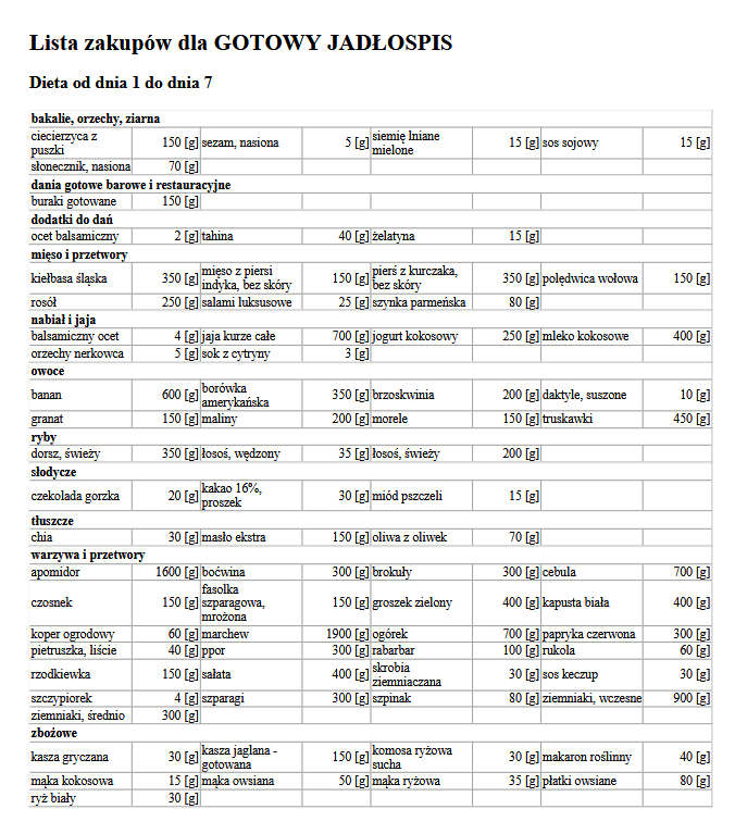 GOTOWY JADŁOSPIS